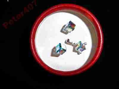SWAROVSKI CUBE 6MM CRYSTAL AB SREBRO