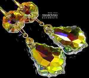 Ekskluzywne duże kryształy Swarovskiego Baroque w kolorze Aurora Borealis (tęczowy opalizujący). Wyjątkowa biżuteria na każdą okazję. Może stanowić centralny element kreacji i wspaniały prezent dla najbliższej osoby.