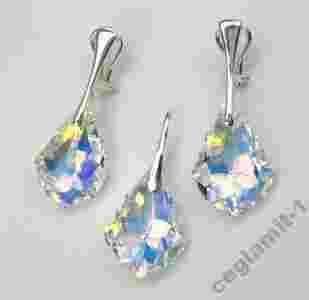 KOMPLET SREBRNY Z KRYSZTAŁAMI SWAROVSKI