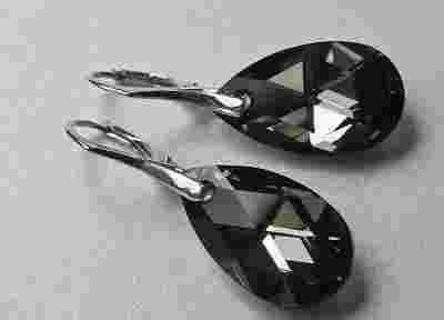 Swarovski Migdał 22mm Kolczyki ~ Silver Night ~