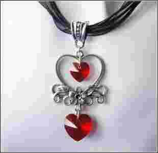Swarovski Naszyjnik Serca Serduszka Czerwone