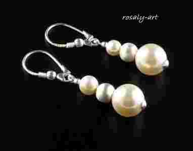 SWAROVSKI PERŁY + SATYNA KOLCZYKI ślubne SREBRO