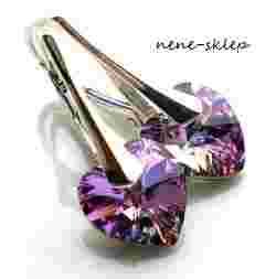Kolczyki wykonane są z kryształów Heart Swarovski oraz bigli wykonanych ze srebra próby 925.