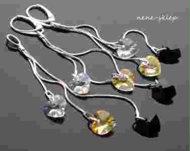 Komplety wykonane są z kryształów HEART SWAROVSKI oraz bigli, krawatki, żmijek i kółeczek wykonanych ze srebra 925.