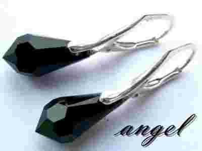 SWAROVSKI TEAR DROP JET 15mm KOLCZYKI 925 SREBRO