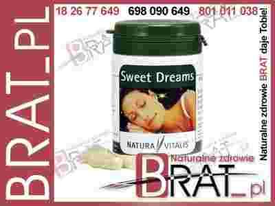 Przyczyną kłopotów z zasypianiem jest często niedobór witamin B6, C, E, B2. Ich uzupełnieniem jest preparat Sweet Dreams, który zawiera duże ilości tych witamin. Działa kojąco i uspokajająco, ułatwia zasypianie, korzystnie wpływa na spokojny sen. Proszek z bananów zawarty w preparacie to źródło potasu, który pomaga transportować tlen do mózgu.
