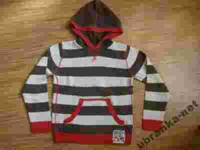 Przedmiotem aukcji jest sweter firmy Reserved w rozm. 152. Sweter jest w brązowo-beżowe pasy z czerwonymi wykończeniami. Z kapturem, z przodu kieszeń typu kangurka. Jest w stanie bdb. Nie posiada żadnych widocznych wad typu dziury, pęknięcia, plamy, wyblaknięcia. Jest naprawdę ładny (wszystkie cienie to wina aparatu, sweter jest idealny czekoladowy). Moje dziecko ma bardzo dużo ciuszków więc ich stan najczęściej jest bardzo dobry a niektórych nawet idealny. Używany tylko przez mojego synka, a prany w delikatnym niemieckim płynie Weiser Riese. Pochodzi z domu, w którym się nie pali papierosów ani nie ma zwierząt. Zdjęcia wyszły trochę blade i na niektórych są cienie od lampy, gdyż nie dysponuję zbyt dobrym aparatem, w rzeczywistości jest w bardziej żywych kolorach.