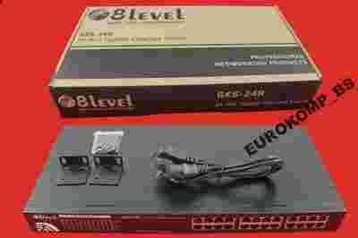 24 portowy przełącznik 8level GES-24R to urządzenie rackowe przystosowane do montażu w szafie, umożliwiające obsługę gigabitowego połączenia Ethernet 10/100/1000Mbps. Każdy z 24 portów switcha posiada funkcję automatycznego krosowania MDI/MDIX pozwalając na szybką instalację urządzenia bez potrzeby sprawdzania czy użyte kable są krosowane lub czy porty po drugiej stronie urządzenia są typu Uplink. Dzięki temu, sprzęt działa na zasadzie Plug-and Play.