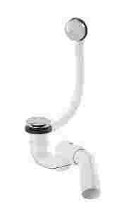 Automatyczny komplet odpływowo-przelewowy typu "click-clack" z syfonem samoczyszczącym, korek i zawór spustowy z mosiądzu pokrytego chromem; pokrywa o średnicy 70 mm; rurka o długości 500 mm; łuk odpływowy 135°, odpływ 40/50 mm; z przeznaczeniem do standardowych wanien i głębokich brodzików prysznicowych z otworem odpływowym o średnicy Ø 50