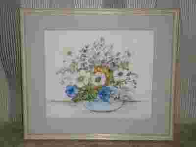 SYGNOWANA AKWARELA W ŁADNEJ RAMCE ZA SZKŁEM