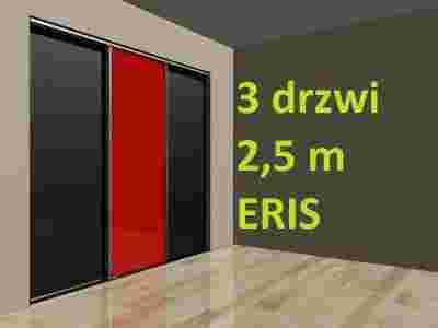 Cechy: - system do zastosowania z płytą meblową 18 mm lub lustrem / szybą oraz płytą - maksymalny ciężar jednego skrzydła 50 kg (waga 1m2 płyty wiórowej meblowej 18mm - około 12kg) - do zastosowania w szafach, garderobach, wnękach itp. - system samodzielnego montażu - oferowany na aukcji zestaw pozwala na zabudowę wnęki o wysokości około 2,72m Zestaw zawiera: - 6 szt. rączek ERIS o długości 2,7 m, - 2,5 metra toru dolnego, - 2,5 metra toru górnego, - 2,5 metra proflu L (do wykończenia dołu drzwi), - 6 klipów do montażu toru dolnego, - 6 okuć dolnych (dolne kółka - metalowe łożyskowane), - 6 okuć górnych (kółka), - 15,5 metrów bieżących szczotki odbojowej, - 5,4 metra szczotki uszczelniającej.
