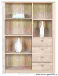 Regał z czterema półkami i czterema szufladami.