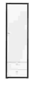 Jednodrzwiowa szafa z dwoma szufladami.