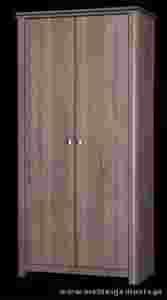 Dwudrzwiowa szafa ubraniowa z drążkiem i półką nad nią.