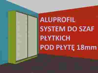 System okuć do drzwi przesuwnych marki ALUPROFIL wersja Medium 56 z rączką CLASSIC PLUS do zastosowania z płytą 18 mm.