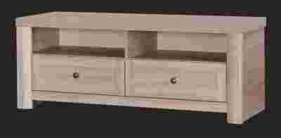 Mała komoda z dwiema szufladami oraz dwiema wnękami na sprzęt RTV