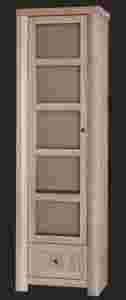 Przeszklona witryna z półkami oraz szufladą