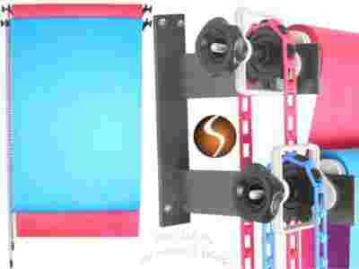 Zestaw możesz zamontować na ścianie lub suficie. Tła mocuje się na tulei ( kartonowej, aluminiowej lub z innego sztywnego materiału ). Pokrętła z boku działają na zasadzie kołków rozporowych, wkręcając je uzyskujemy trwałe połączenie tła na tulei z systemem zawieszania. Tła są odwijane i nawijane przy pomocy specjalnego mechanizmu, która u góry jest zabezpieczony przed zsunięciem, a na dole posiada obciążnik. Śrubami można regulować siłę docisku, która zapobiega samodzielnemu odwijaniu się teł. Na tym zestawie zamocujesz tła o dowolnej długości (składa się z dwóch oddzielnie montowanych części) !!