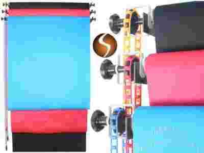 Zestaw do podwieszania teł wraz z tłami 160cm nawiniętymi na kartonowe tuleje. Całość gotowa do zamocowania na ścianie lub suficie. Zestaw umożliwia mocowanie na dowolnej wysokości, dowolnej długości tła, umożliwiając wygodną regulację długości tła.