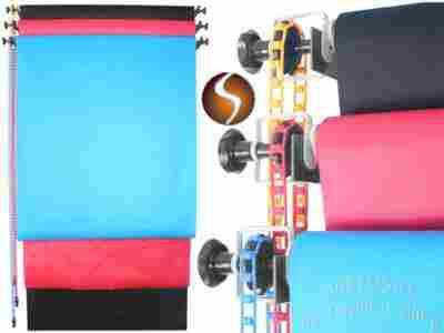 Zestaw do podwieszania teł wraz z tłami 2.70m nawiniętymi na kartonowe tuleje. Całość gotowa do zamocowania na ścianie lub suficie. Zestaw umożliwia mocowanie na dowolnej wysokości, dowolnej długości tła, umożliwiając wygodną regulację długości tła.