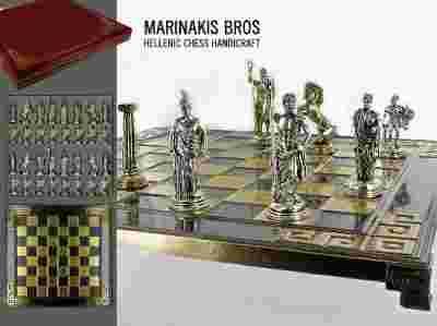 Piękne ekskluzywne SZACHY GRECKIE / HELLENISTYCZNE Marinakis Bross alabaster 35x35cm Szachy - Apollon Chess Set