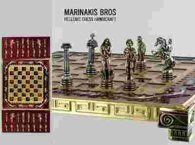 Piękne ekskluzywne SZACHY GRECKIE / HELLENISTYCZNE Marinakis Bross alabaster 39x22cm Szachy - Athena Chess Set