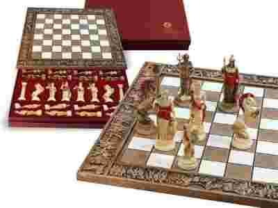 Piękne ekskluzywne szachy SZACHY katolickie Marinakis Bross alabaster 38.5x38.5cm