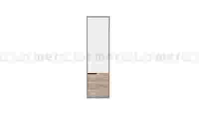 Bieliźniarka do pokoju młodzieżowego z kolekcji GIOCO. Wykonana została w kolorze dębu. Biały front szafki ma charakterystyczne dla tej kolekcji frezowanie, które pełni rolę uchwytu. Takie rozwiązanie daje także gwarancję bezpiecznego użytkowania mebla. Szafa wyposażona jest w sześć półek, idealnych do przechowywania odzieży lub bielizny.