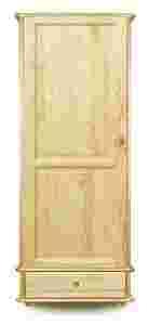 Wysokiej jakości mebel w całości wykonany z litego drewna sosnowego, masywne pełne boki i półki grubości 2 cm stabilizują szafę, plecy wykonane z płyty HDF sosnopodobnej. Drzwi wykonane z PIERWSZEGO GATUNKU DREWNA, BEZSĘCZNE.