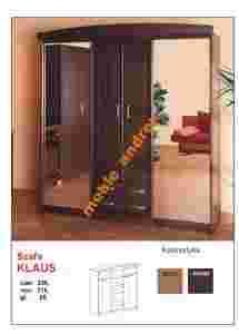 Szafa Klaus: -------------------------------------------------- Szerokość : 205cm, wysokość : 216cm, Głębokość : 60cm Stan : nowy. Kolorystyka do wyboru :