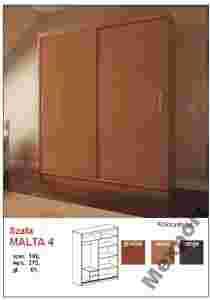 Witam Państwa! Oferujemy Państwo super nowoczesną i funkcjonalną szafę MALTA 4. Szafa posiada drzwi przesuwne. Efektowne połączenie kolorów powoduje że szafa MALTA 4 pięknie wygląda. Szafa wykonana z pełnej płyty laminowanej grubości 16mm, posiada prowadnice aluminiowe.Trwała i staranne wykonanie. Kolorystyka : Grusza Olcha Wenge WYMIARY SZAFY: długość 180cm wysokość 215cm głębokość 61cm Mebel do samodzielnego montażu.