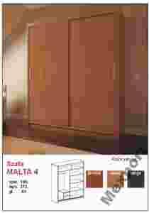 Witam Państwa! Oferujemy Państwo super nowoczesną i funkcjonalną szafę MALTA 4. Szafa posiada drzwi przesuwne. Efektowne połączenie kolorów powoduje że szafa MALTA 4 pięknie wygląda. Szafa wykonana z pełnej płyty laminowanej grubości 16mm, posiada prowadnice aluminiowe.Trwała i staranne wykonanie. Kolorystyka : Grusza Olcha Wenge WYMIARY SZAFY: długość 180cm wysokość 215cm głębokość 61cm Mebel do samodzielnego montażu.