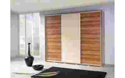 Szafa Penelopa 255 to duża i przestronna szafa o szerokości 255 cm dedykowana do klasycznych i bardziej nowoczesnych sypialni. Mebel składa się z 3 ruchomych frontów po przesunięciu których otrzymamy dostęp do kilku półek, dwóch drążków na wieszaki oraz trzy szuflady! Producent chcąc sprostać wymaganiom najbardziej wymagających klientów wykorzystał do produkcji m.in. wysokiej jakości płyte laminowaną wzmocnioną okleiną ABS, prowadnic firmy Servoll oraz plastikowe nóżki.