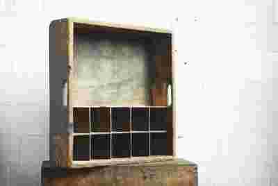 drewniana stara szafka wyrwana ze starej fabryki przeznaczonej do rozbiórki /