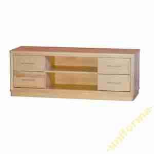 Szafka składa się z dwóch części w których są po dwie szuflady i środkowej części z wyjmowaną półką. Szafka ma wycięte otwory na kable. Szuflady mocowane są na prowadnicach rolkowych. Srebrne uchwyty.
