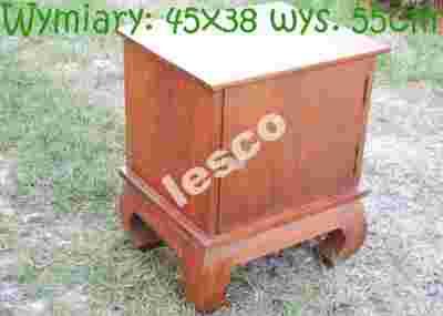 Niezwykle masywna i ciezka bo wykonana z najlepszej jakosci mahoniowych bali. Wykonana recznie przez naszych stolarzy i wykonczona w sposób uwypuklajacy przepiekne słoje mahoniowego drewna. Moze byc mebelkiem indywidualnym, lub w komplecie z łóżkiem „opium”, ktore mamy na innej naszej aukcji. Praktycznie inwestycja na cale zycie!
