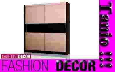Piękna nowoczesna szafa wykonana z wysokiej jakości płyty laminowanej w kolorze mlecznego dębu z ozdobnym pasem z brązowego szkła.