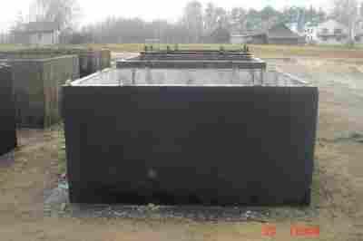 wykonany jest z betonu własnej produkcji klasy B-25, wibrowany z dodatkiem płynów wodno-uszczelniających, zbrojony stalą żebrowaną oraz zabezpieczony od zewnątrz masą asfaltowo-kauczukową (izolbet), co pozwala nam uzyskać wysoką jakość betonu, szczelność i wytrzymałość.