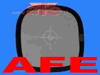 SZARA PŁASZCZYZNA z celownikiem do nastawy ostrości, odbija 18% padającego światła. Jest to tzw szarość średnia, znajdująca się prawie dokładnie po środku między czernią a bielą. Światłomierze, także i w aparatach, dają po pomiarze takie parametry, że mierzona powierzchnia naświetli się tak, jakby miała właśnie ten odcień średni.