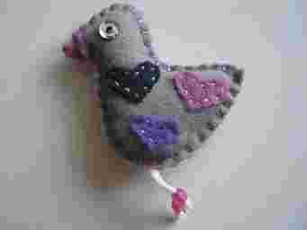 Szary ptaszek z filcu/filc/filcowy