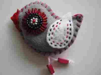 Szary ptaszek z filcu/filc/filcowy