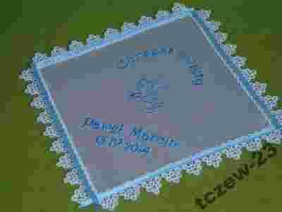 Szatka do chrztu CHRZEST haft imię+data PROMOCJA