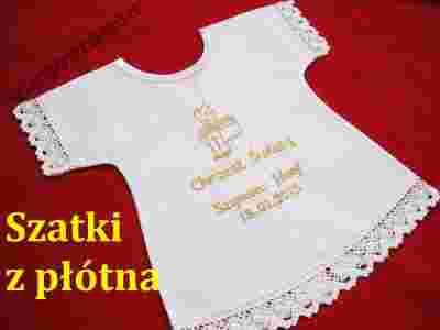 Szatka, chrzestka, chrzczonka, szatka – koszulka na chrzest z wyhaftowanym imieniem i datą chrztu.