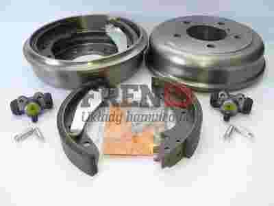 KOMPLET SZCZĘK, BĘBNÓW, CYLINDERKÓW [2szt.] HAMULCOWYCH I SPRĘŻYN MONTAŻOWYCH NA CAŁĄ TYLNĄ OŚ [OBA KOŁA]