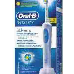 Szczoteczka Oral-B Vitality 3D White wykonuje 7600 ruchów oscylacyjnych na minutę dzięki czemu zapewnia znakomite efekty w usuwaniu płytki nazębnej. Główka szczoteczki dzięki specjalnej gumce polerującej zęby dopasowuje się do kształtu każdego zęba co umożliwia eliminowanie osadu i delikatne usuwanie przebarwień powierzchniowych.