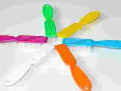 Niezawodna szczoteczka dostępna w 6 kolorach do pyłu przy zbiegach manicure i pedicure.