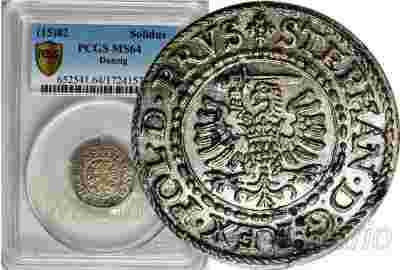 Szeląg, Gdańsk, 1582, najwyższa nota, PCGS MS64