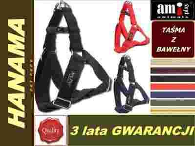Szelki dla psów o regulowanej długości obwodu klatki piersiowej, rozmiar 40-75cm, wykonane z taśmy bawełnianej szerokości 3cm. Dla większego, średniego i dużego psa.