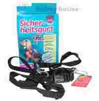 W komplecie smycz do wpięcia w zatrzask pasów bezpieczeństwa długości 45 cm z możliwością skracania
