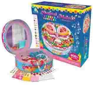 Zestaw kreatywny , w którym dziecko ma ozdobić szkatułkę na biżuterię ,dołączonymi naklejkami o różnych kolorach,kształtach i kolorach.